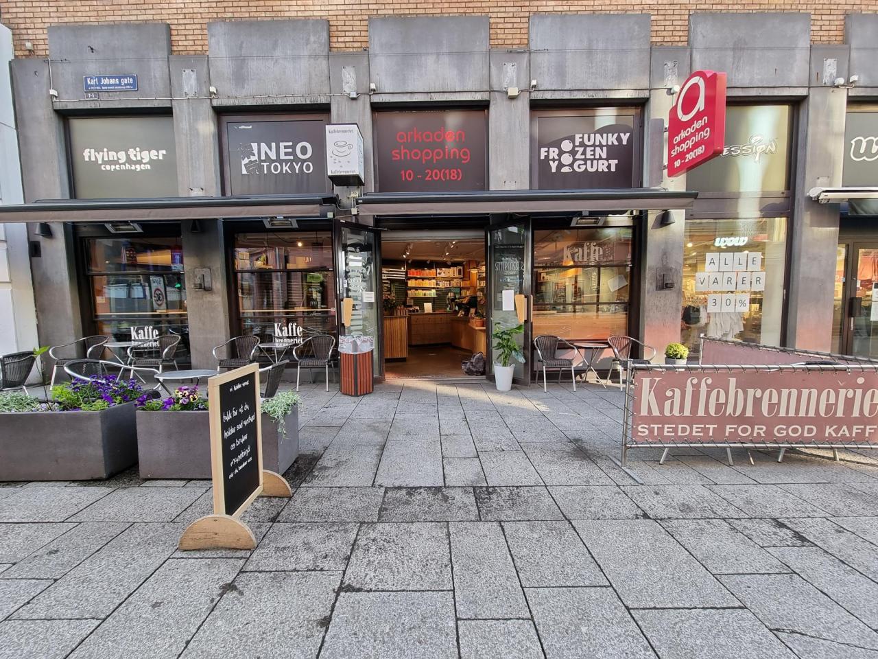 Anno november 2009: I 1994 åpnet Kaffebrenneriet avdelingen i Theresesesgate på Bislett. Det har vært en lang vei å gå, og utfordringene har selvsagt vært tilstede. Dette går ikke bra! sa den ene forbipasserende da vi akkurat hadde åpnet. Så fantastisk sa den andre, og reiv opp døra! Dette er bra, men dere burde ha vært på Karl Johan sa den tredje! Er det bare kaffe….. sa den fjerde! Etter mange år så har Kaffebrenneriet endelig forretning på Karl Johan! Og vi synes sjøl at vi har gjort det ganske bra og at vi er flinke på det vi driver med. Innredningen er ikke lengre hjemmesnekret, men i utgangspunktet lik i utforming. Baristaen er ikke lengre Thomas, men har bedre og kyndigere opplæring enn den gangen. Kundene er ikke de samme, de er en del år “yngre”, men det er fremdeles mange av de sammen kundene å se i Theresesgate nå som den gangen. Vi gleder oss over å være i Arkaden på Karl Johan. Og ser dere en kar som lunter rundt bygget og sjekker tidlig på morgenen, så vær trygg, det er vaktmesteren som går runden sin før han kommer inn for en kopp kaffe!
