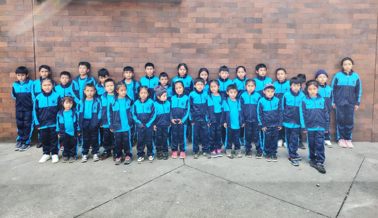 Alle barna på La Cuchilla og Los Cerritos skolene får sine første uniformer bestående av jakke, bukse, t-skjorte samt shorts og trøye til gymtimene.